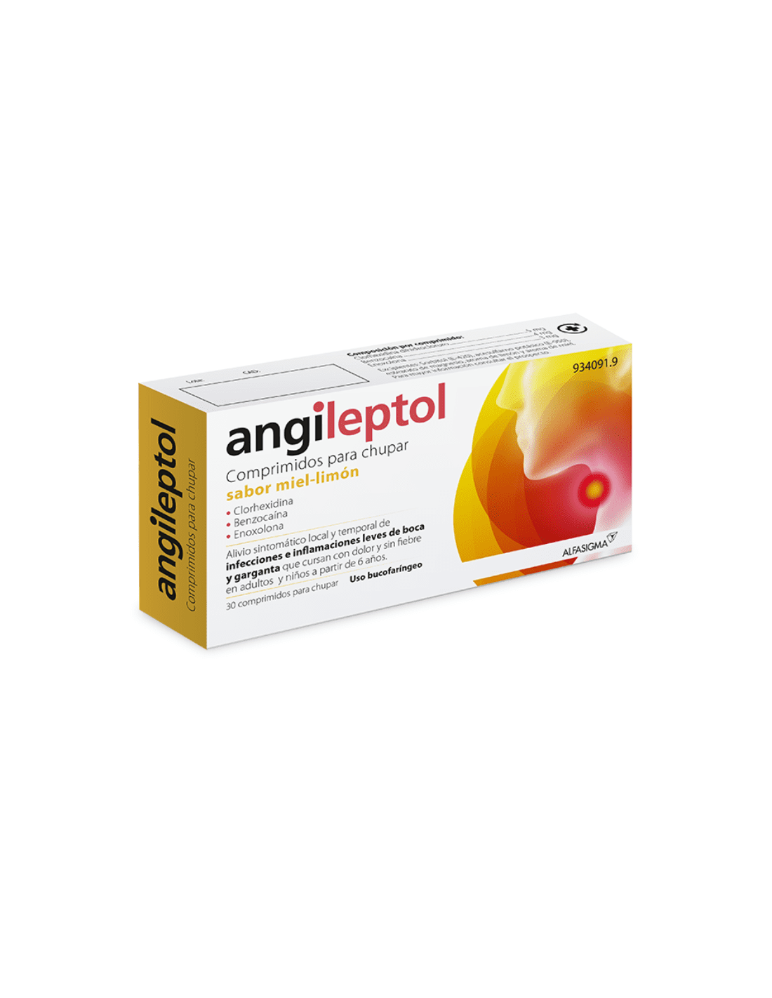 Comprimidos para chupar con acción antiséptica y antiinflamatoria local (clorhexidina + benzocaína).
